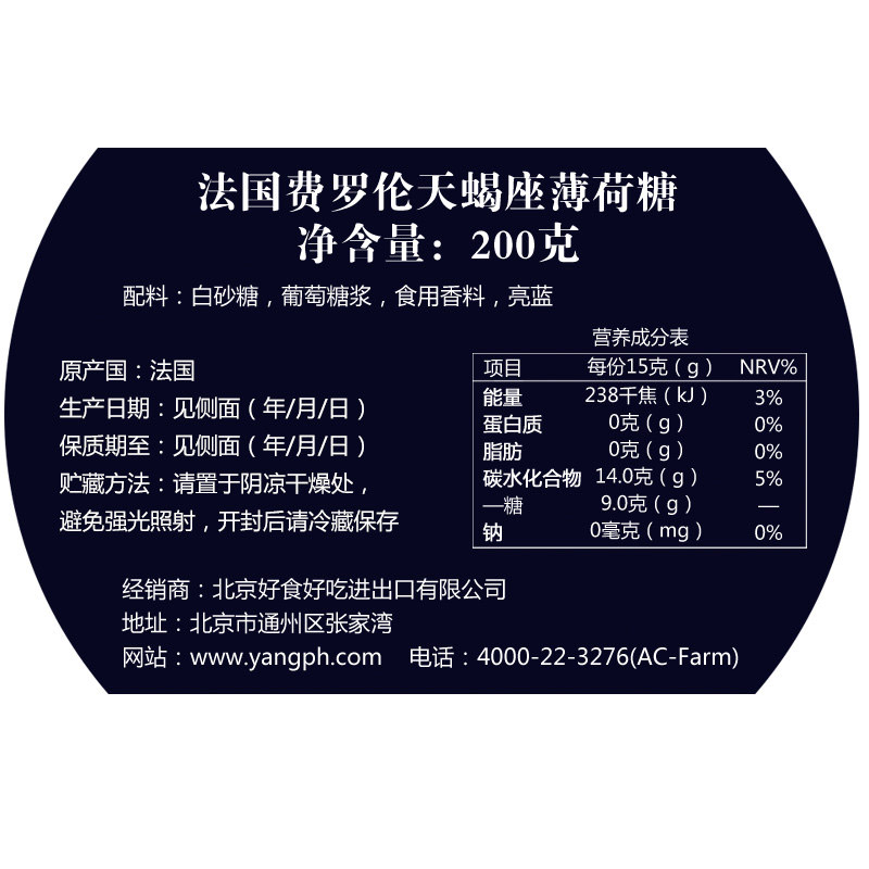 商品名称:法国进口零食费罗伦十二星座糖水果味薄荷硬糖果礼盒装清凉糖女生 十二款定制独有星座可写贺卡颜控糖情人礼盒